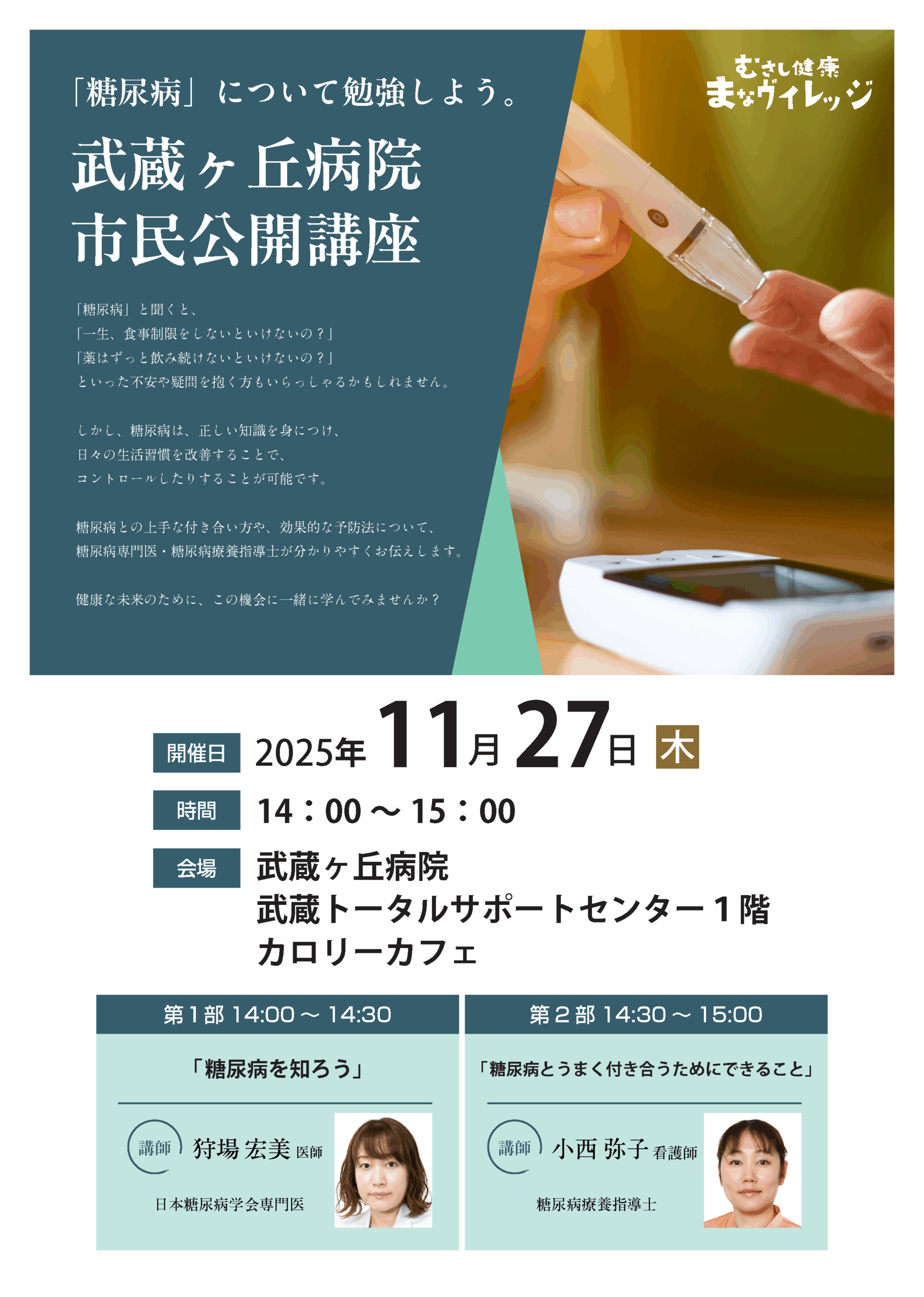 11月むさし健康まなヴィレッジのご案内 2025.10.30 健康づくりに役立つ学びや体験ができるイベント「むさし健康まなヴィレッジ」を、11月も開催します!気軽に参加できる内容となっておりますので、ぜひこの機会にご一緒しませんか? 前のページに戻る