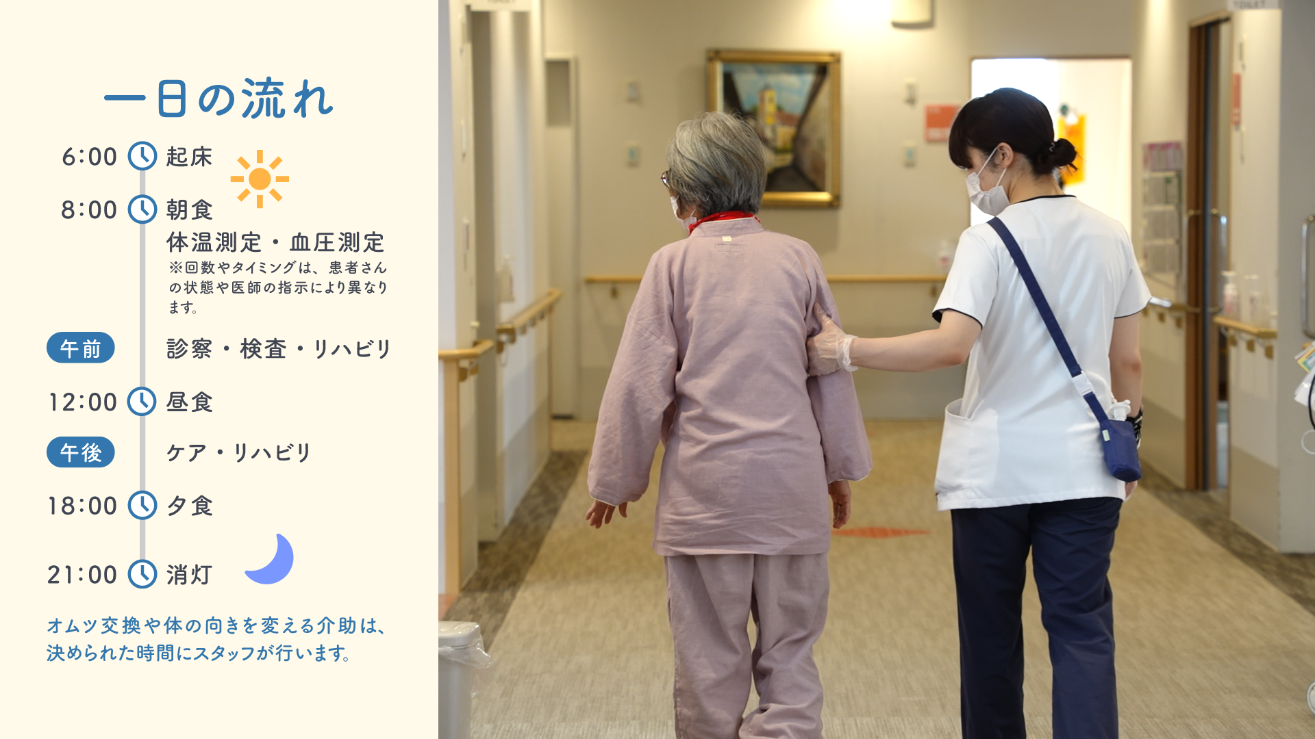 この度、当院への入院を予定されている患者様やご家族の不安を少しでも解消できるよう、「入院のご案内」の動画を制作・公開しました。