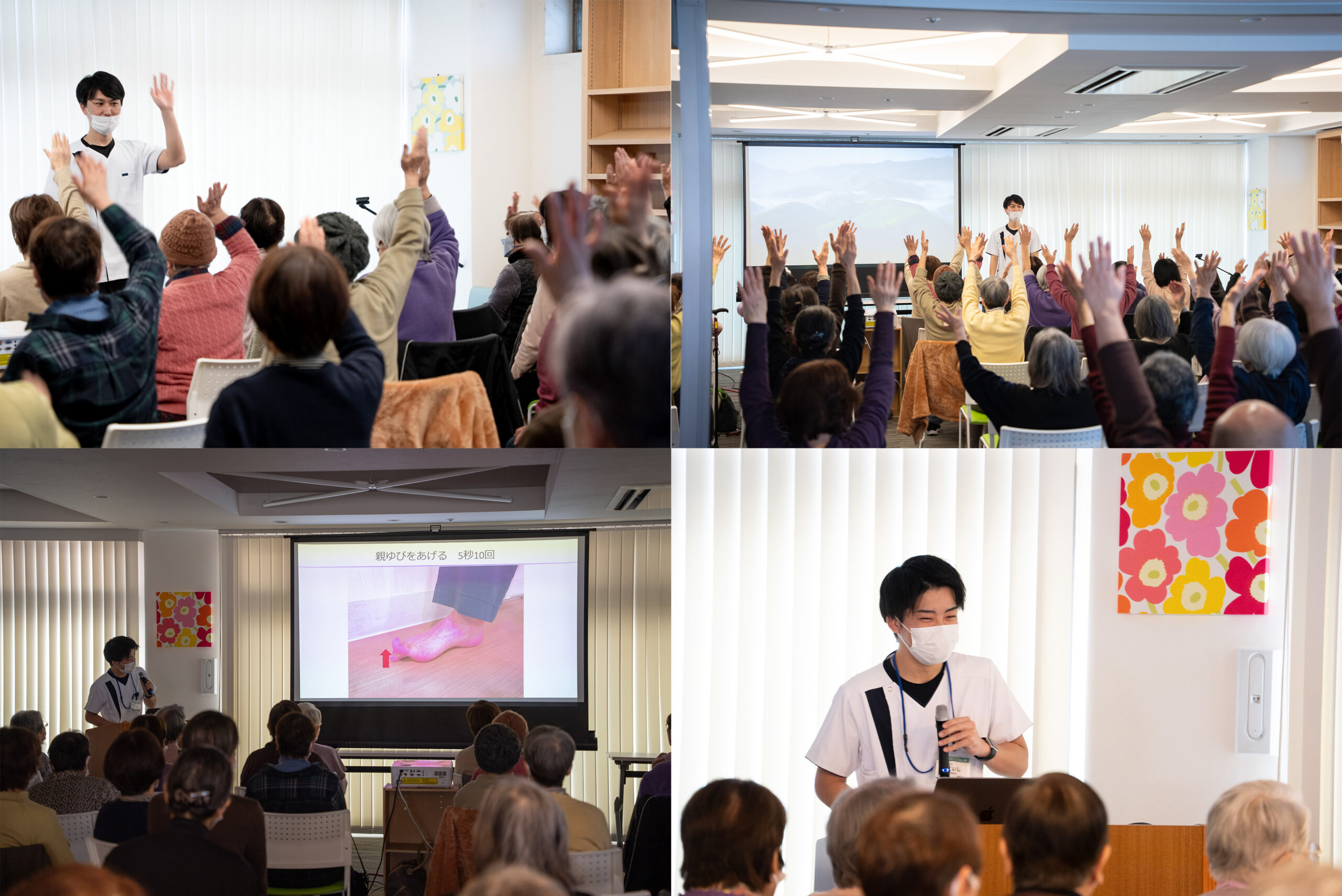 理学療法士の園田が担当し、ドイツ発祥の「運動と脳トレ」を組み合わせたエクササイズを行いました。 - 講演「足のゆびから始める転倒予防」